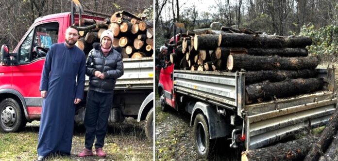 Parohia Vlădești oferă lemne de foc pentru o familie nevoiașă