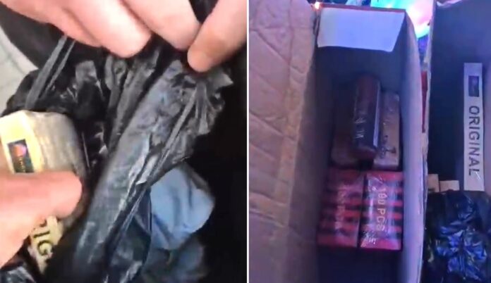 Suspiciunile au apărut când forțele de ordine au observat modul în care acesta încerca să ascundă materialele interzise. Produsele erau depozitate în cutii de carton, camuflate cu instalații luminoase de brad pentru a evita verificările.