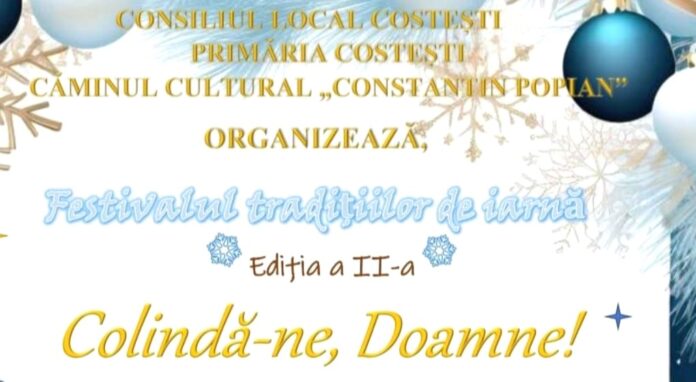 Primăria și Consiliul Local din Costești pregătesc cea de-a doua ediție a Festivalului tradițiilor de iarnă, un eveniment menit să devină o tradiție importantă pentru comunitate. Festivalul poartă numele „Colindă-ne, Doamne” și are scopul de a celebra obiceiurile specifice acestui sezon.